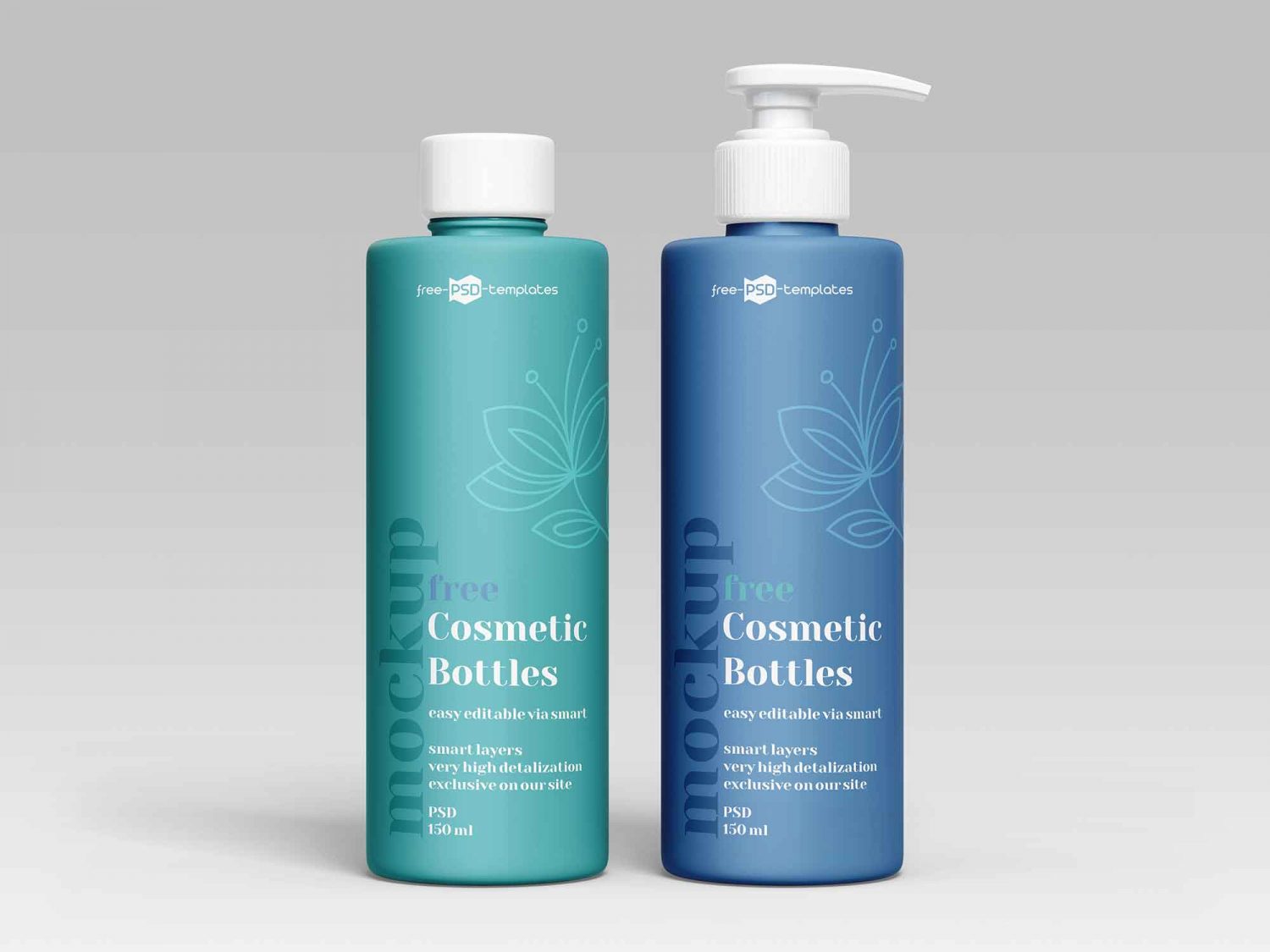 Cosmetic Bottles Mockup PSD to present your branding design in a photorealistic look. Contains special layers and smart object for your artworks.