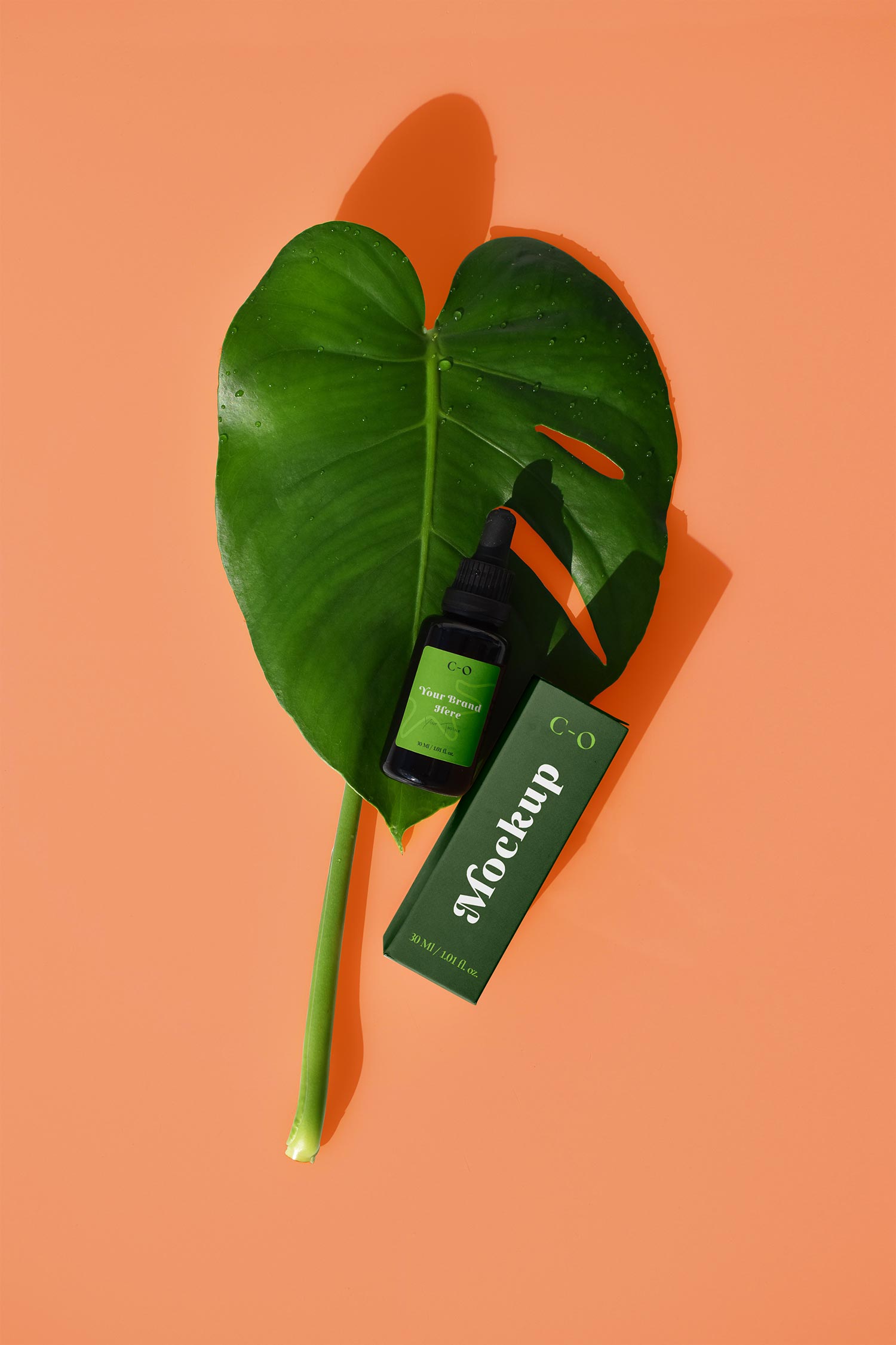 A high-quality mockup featuring an essential oil dropper bottle placed beside its matching packaging box, perfect for presenting cosmetic, skincare, or wellness product designs. The clean and minimal scene highlights both the label and box artwork, allowing you to showcase your branding consistently across multiple surfaces. Realistic lighting and reflections bring out the glass texture of the bottle and the fine details of the packaging, giving your design a premium, market-ready appearance. Ideal for designers, product developers, or natural beauty brands looking to visualize their packaging in a professional way. Fully customizable via smart objects, this mockup allows you to adjust colors, backgrounds, and artwork with ease — perfect for client presentations, online stores, or portfolio showcases.
