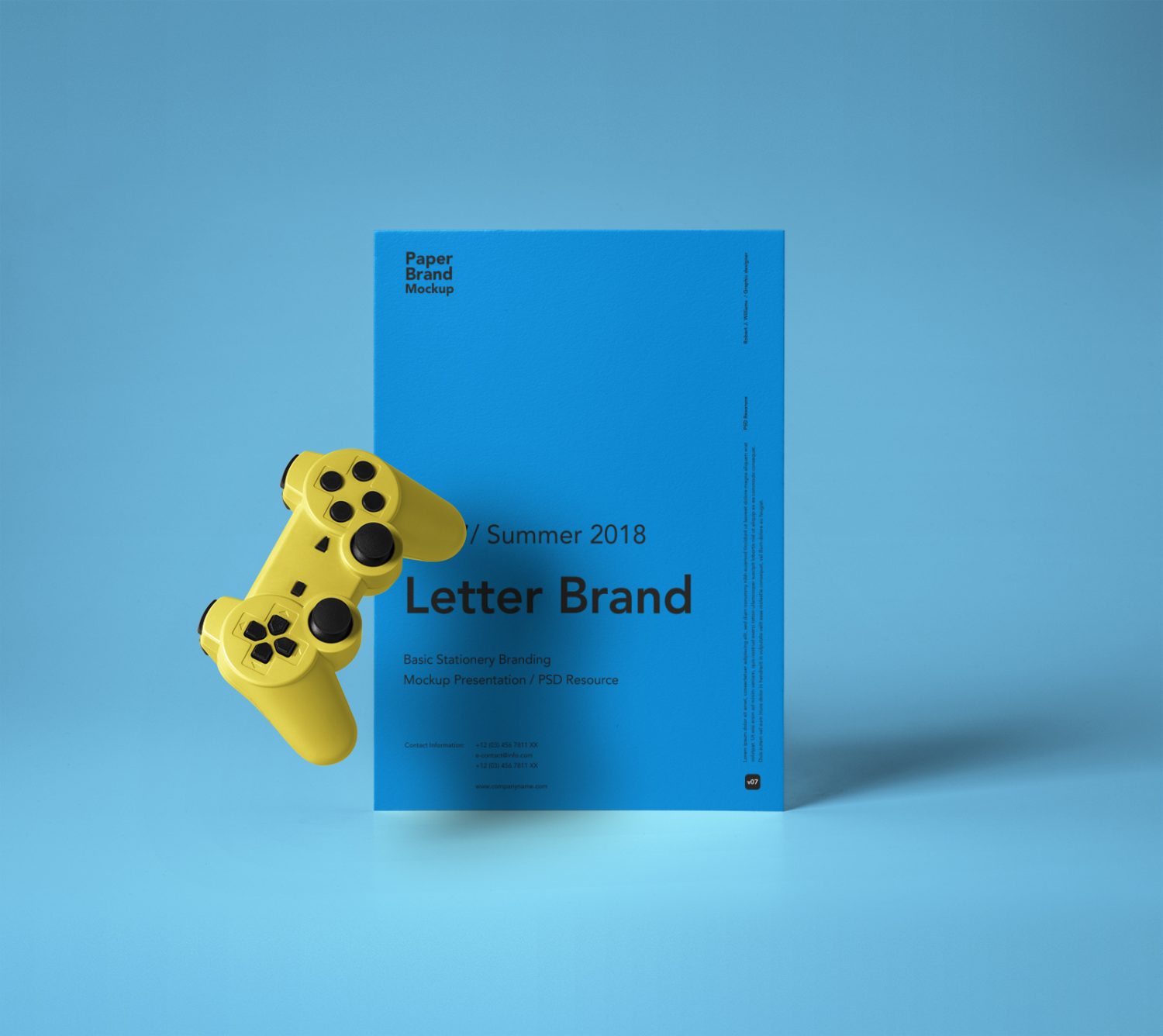 Free Paper Brand Mockup PSD is a PSD paper brand mockup that includes a floating game controller accessory. The mockup is available in blank mode, so you can edit it according to your taste to make it look like your own.