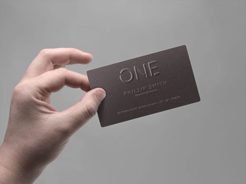 The business cards themselves can be fully customized with your own designs, logos, contact information, or any other branding elements you wish to showcase. Each card is clearly visible and well-positioned within the hand, allowing viewers to appreciate the details and overall layout of your designs.