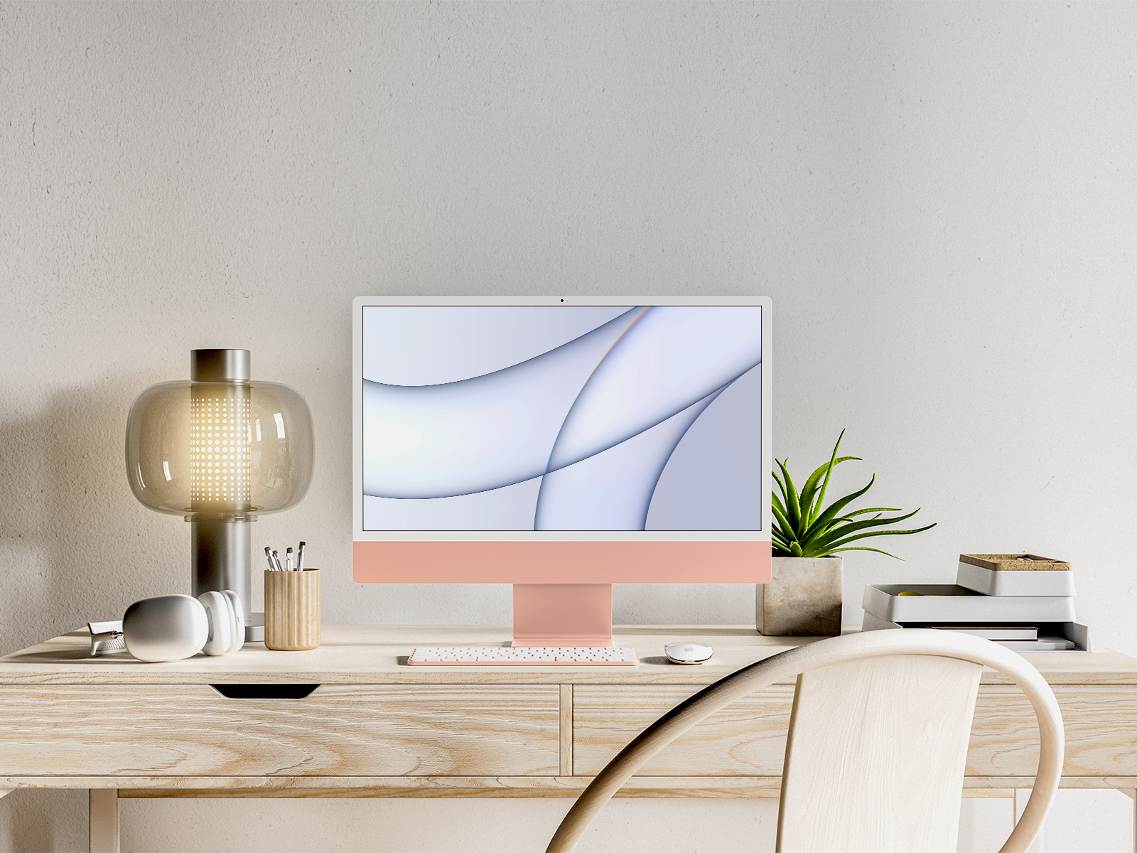 The mockup features a high-resolution image of an iMac computer placed in a modern and stylish setting. The background and surroundings are carefully chosen to create an environment that complements the sleek and sophisticated nature of the iMac.