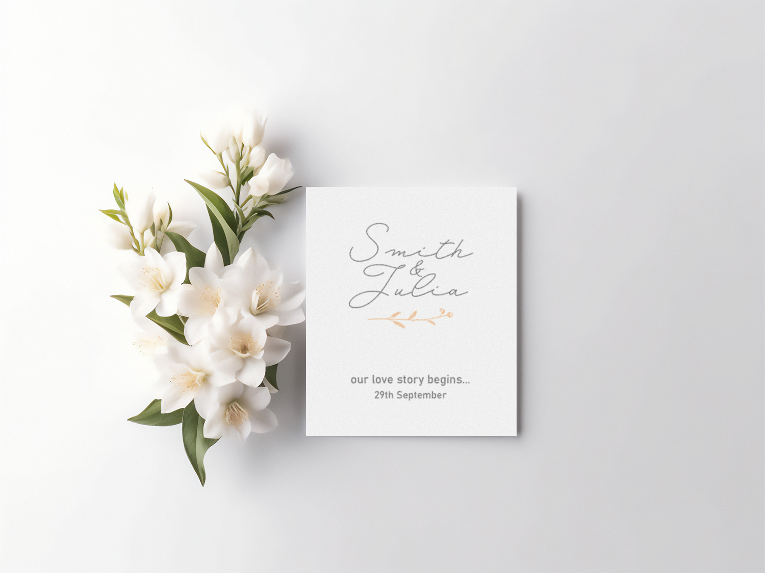 A realistic and elegant mockup featuring an invitation card alongside its matching envelope, perfect for showcasing wedding …