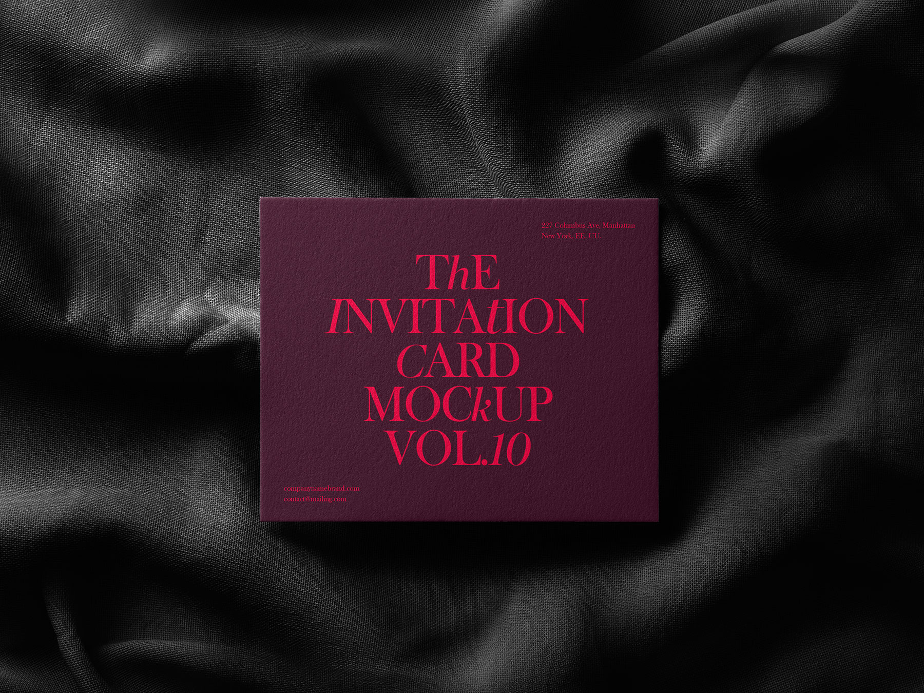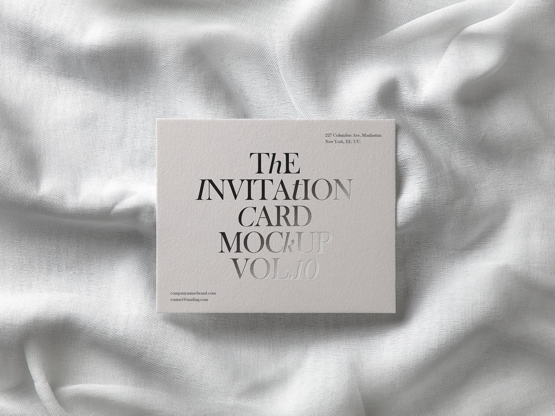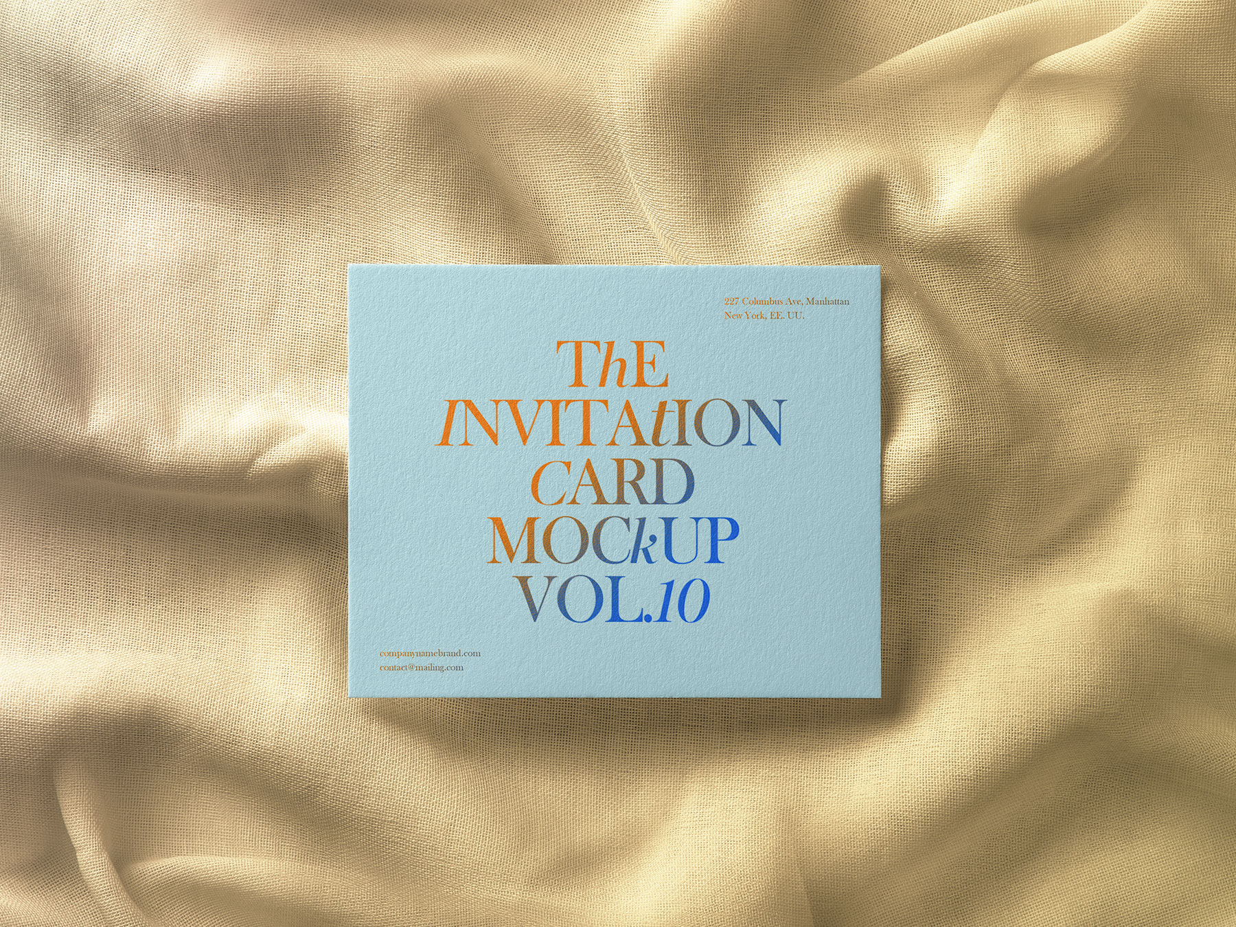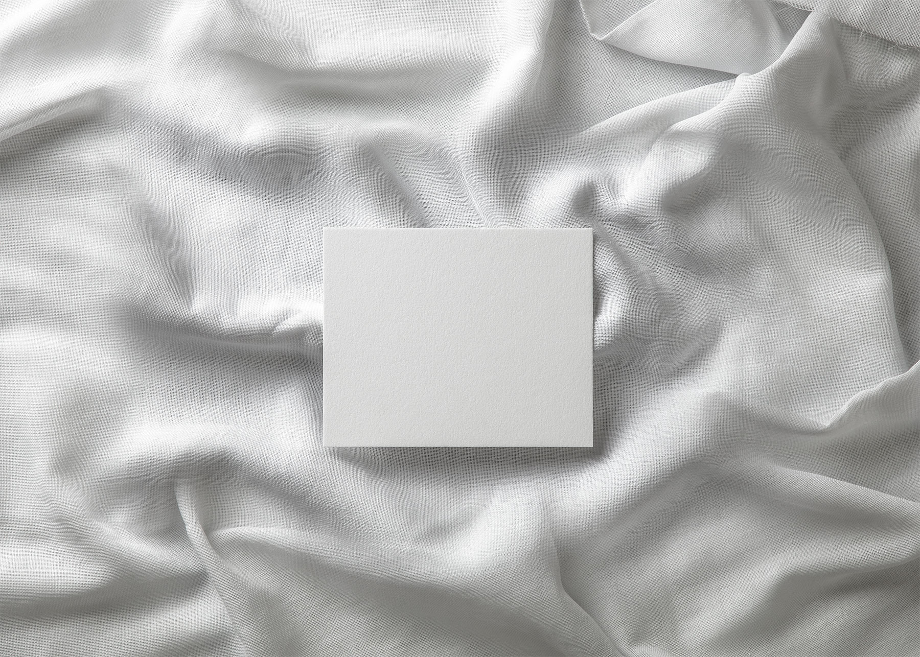 An elegant top-view mockup showcasing an invitation card placed on a soft fabric background, creating a warm and refined presentation. The natural folds and texture of the fabric add depth and realism while keeping the focus on the card design. This mockup is ideal for wedding invitations, event announcements, stationery branding, or calligraphy showcases. With its minimal yet stylish composition, it allows typography, colors, and layout details to stand out clearly in professional presentations, portfolios, and online previews.